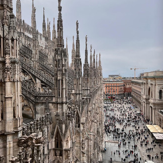 We only had part of a day in this second-largest city in Italy. Kevin had lived there for a year in the late 1980s, so he was our guide. We had pre-purchased tickets to see the Duomo (and climb the roof), as well as the Last Supper. We left our bags at the deposito bagagli at the train station and walked the city. We first went to see the new buildings at Piazza Alvar Aalto and Piazza Gae Aulenti, visited the Sforza Castle, the Brera neighborhood, the Pinacoteca di Brera museum, and had a quick lunch before our scheduled booking for the Last Supper at Santa Maria delle Grazie. It turns out we had read our entry time incorrectly and were almost an hour late - but they managed to find us a slot in one of the current tours. The now restored painting by Leonardo da Vinci is impressive and is lucky to have survived the bombing that destroyed part of the church and courtyard during World War II.